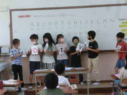 アルファベットに慣れよう、ということでミッシングゲームや並べ替えゲームをしながらA.L.T.の発音を聞いて何度も発音をしました。
