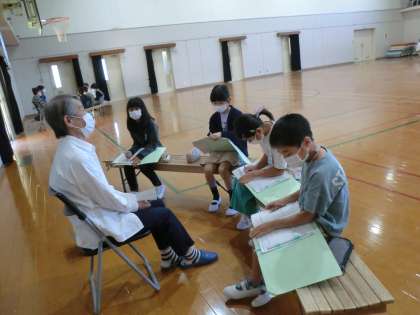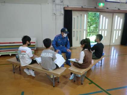 今日は、地域の方々をお招きして、「見守り隊」「消防団」「PTA」「少年補導委員会」のそれぞれの活動についてお話を伺いました。
