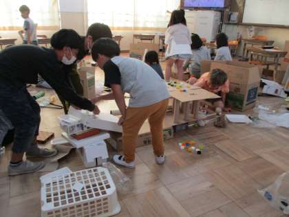 今日は友だちと協力しながらいろいろ組み立てていました。