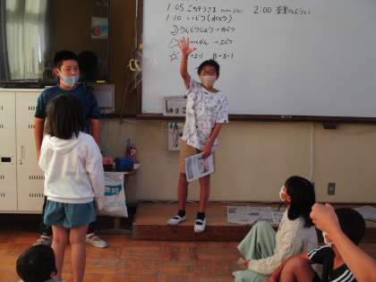 教室では、「新聞紙じゃんけん」を楽しみました。