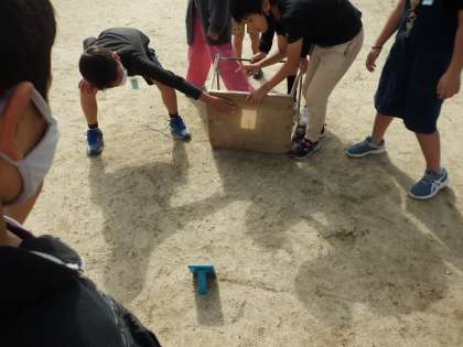 鏡の1枚分と2枚分、3枚分を重ねた場所の明るさを比べたり、温かさを放射温度計で計って比べたりしました。