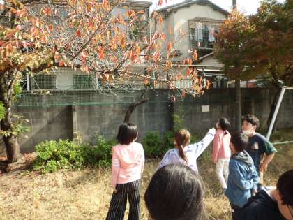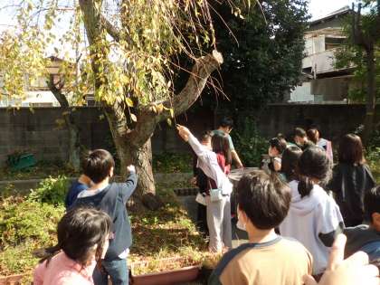 秋の季節の生き物の様子について学習し、サクラの様子を観察しました。