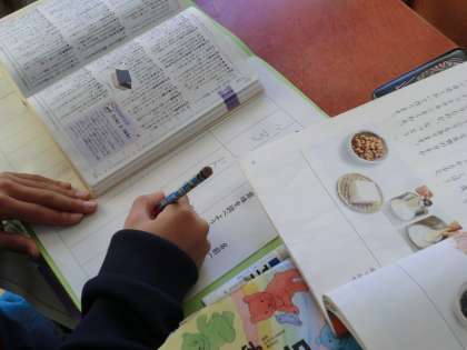 身近な大豆が題材なので音読をしながら内容をつかめている人もいるようですが、全体を通して分からない言葉や、何となく分かってはいても自分で説明のできない言葉を国語辞典で調べています。