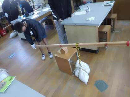 てこの支点を固定して、力点や作用点の位置を変えると、手ごたえが変わるかについて調べました。