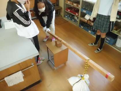 おもりの位置を支点から遠ざけたり近づけたりして、手ごたえを確かめました。