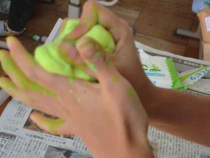 紙粘土は時間がたつと乾いてしまうので短時間での制作でしたが、集中して取り組んでいました。