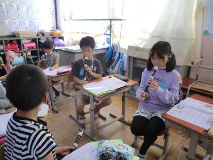 ペアになってリレー奏をしながら互いの音を聴きあいます。