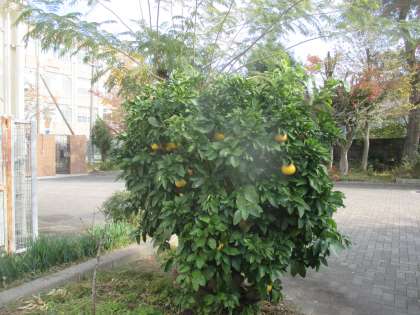 黒門の近くにはグレープフルーツの木がありたくさんの実をつけています。