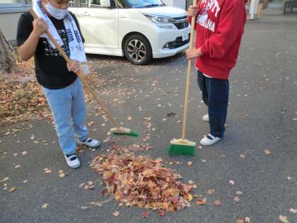 掃除の終わりのころには山になるくらいの葉が集まりました。