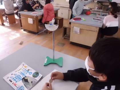 ふりこを実験器を使って、ふりこはどんな動きをするか調べました。