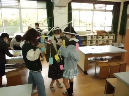 てこのはたらきについて学習したことを生かして、モビールを作りました。