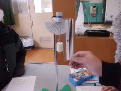 おもりの重さ、ふれはば、ふりこの長さという条件について調べました。