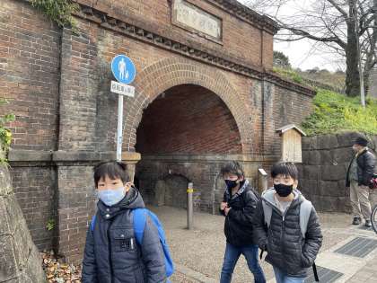 道中、インクラインの線路を見て「こんなところに線路?」「なんのための?」