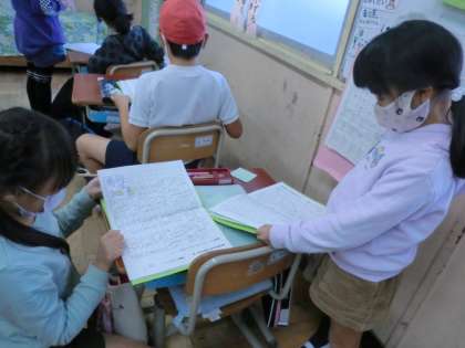 自分で書いた説明文を友だちと読み合い、感想を書き合いました。