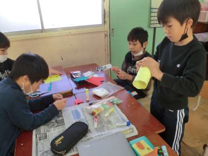 1月に計画中の地域の方々との交流に向けて、自分たちで考えた制作をグループごとに進めています。