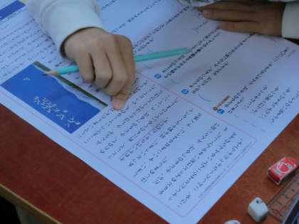 今日は初めて出会う文章を読んで解く問題だったので、「指読み」をしながらじっくり読む姿が見られました。