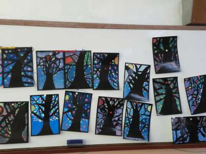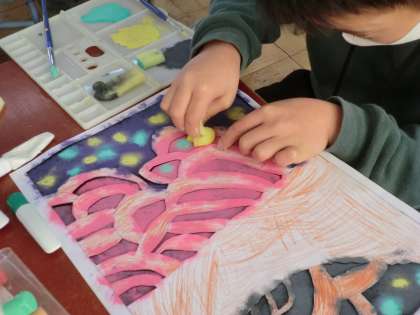カッターで木を残しながら背景を切り抜く作業は難しかったですが、色をつけていく作業はとても楽しんで進めることができました。