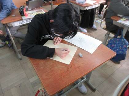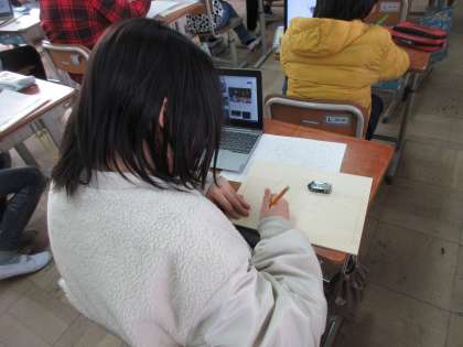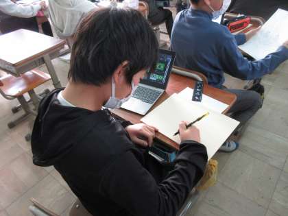 今日はどんなデザインにするかタブレットで、自分の描きたいことを調べながら考えることができました。