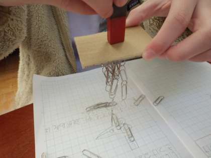 段ボール紙をはさんでも、10個以上のクリップを引きつけることが分かりました。
