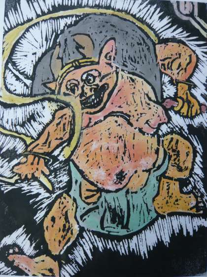 版画『自分の風神・雷神』の作品が出来上がりました。