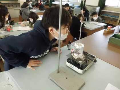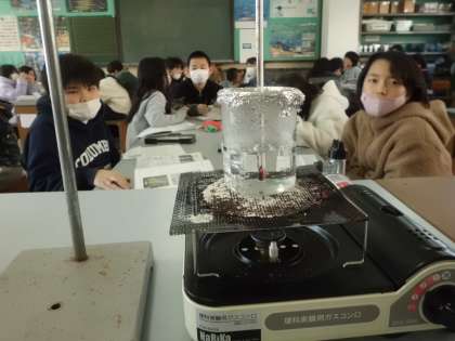 水を熱し続けると温度はどのように変わっていくかを調べました。