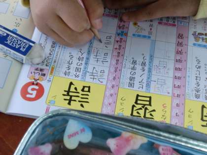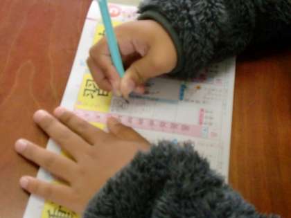 姿勢を正して、筆順に気をつけてひとつひとつ覚えていきます。真新しいドリルを開け、やる気満々の3年生でした。力を入れてしっかりとなぞることも大切なステップです。花丸をもらえるように一画ずつ真剣に書いていました。