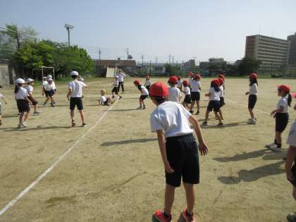 今年度、初めて3・4年生合同で体育をしました。3・4年生が一緒のチームになることで学年関係なく声掛けをし合うことができていました。今回は1対1で引き分け。次はどちらのチームが勝つのか…楽しみですね。