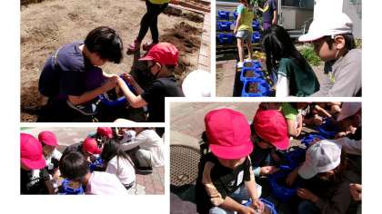 生活科の時間に朝顔の種まきをしました。2年生が、てきぱきと土を入れて準備を手伝ってくれました。種まきの仕方も優しく教えてくれました。月曜日から毎日お水やりをしてお世話していきましょう。どんな色の花が咲くのか今から楽しみですね。