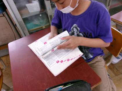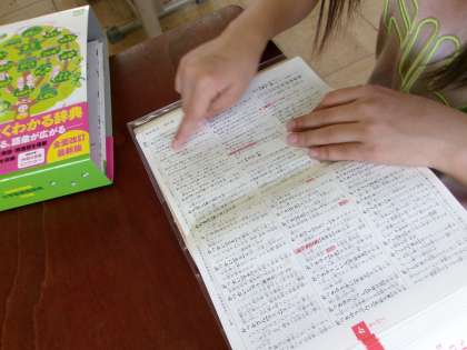 国語辞典を手に取り、中身を覗いてみました。どんなことが書いてあるのだろう・・・と興味津々でした。今日は五十音順に言葉が並んでいること、それぞれの意味や使い方が載っていることなどを知り、実際に語句を調べてみました。なかなかお目当ての語句が見つからない人も・・・!少しずつ慣れていきます。