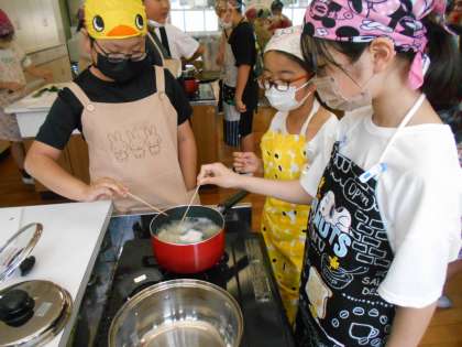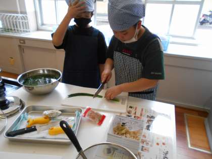 今日の家庭科では、楽しみにしていた調理実習を行いました。