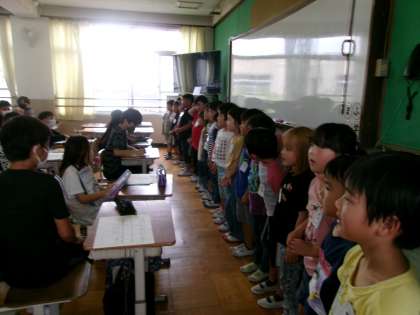 昨日、修学旅行の間のお掃除をとても心配してくれた6年生に、1年生が「気を付けて修学旅行に行ってきてね。6年生がいない間は、自分たちでお掃除がんばるよ。楽しんできてね!」と伝えに行きました。遊んだもらったり、お掃除を手伝ってもらったり、とてもお世話になっている6年生。思いがけない1年からのサプライズを,嬉しそうに聞いていました。