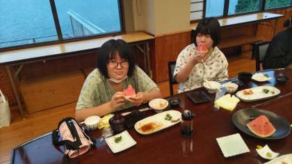 デザートのスイカにも大喜びです。
