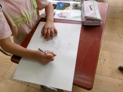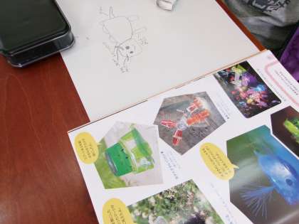 今回は、「光を通す材料」を使って生き物を作ります。最後には光を当てて楽しもうと伝えると、どんどんイメージが広がり、制作を楽しみにしていました。