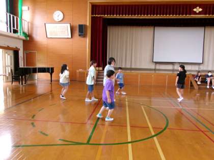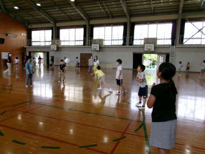 今日は友だちの日でした。昼休みにたてわり班で活動しました。体育館では、「だるまさんがころんだ」「ねことねずみ」「上か下か真ん中か」「風船バレー」をして楽しみました。終わった後、ふりかえりをして次回の活動を決めました。