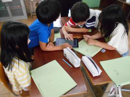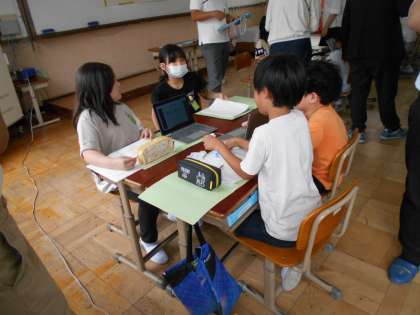 調査した結果をグループで交流しました。いろんな教職員にインタビューをしましたが、似ていたり同じだったりすることもあり、互いに質問し合っていました。整理したものを全体で見てみると、自分たちのランキングしたものと少し違いがありました。まだ調査は続きます。来週には中学生にインタビューをする予定です。