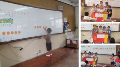 算数の学習では、自分の考えた計算の仕方を図に書いて、言葉や式に表すようにしています。たし算なのか、ひき算なのか、ノートに考えをかき、みんなの前で発表することも上手になってきています。友だちの考えが自分と同じかどうか、しっかり聞く力も少しずつついてきています。ノートの書き方もずいぶん上手になりました。