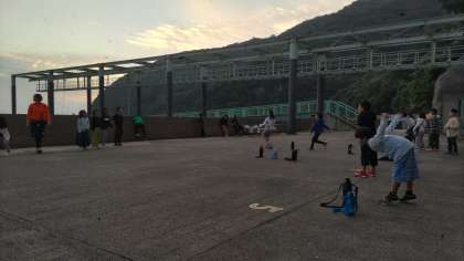 夕日が沈むまでの間、班で何をするか考え手遊んでいます。