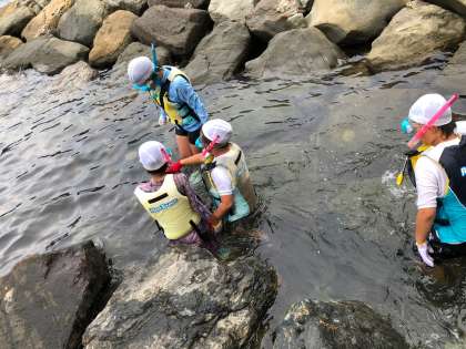 浅瀬での活動とはなりましたが、ウニやヒトデ、魚を見てみんな喜んでいました!