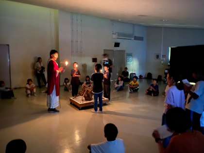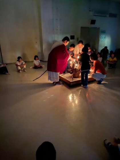 雨のため、キャンドルファイヤーを行います。