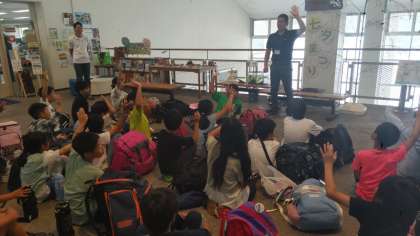 終わりの集いが始まりました。もう一泊したい人という校長先生からの質問に、ほとんどの人が手を上げていました。楽しい思い出ができましたね。