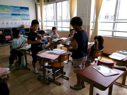 リコーダーを始めて2か月と少し。「シ」「ラ」「ソ」の3つの音を使って演奏できるようになってきました。タンギングもうまくできるようになり、きれいな音色が響いています。リレー奏や分担奏を何度もしながら友だちの音も聴きます。具体的な音のイメージができると、いい演奏につながります。