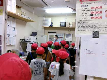 店内を案内していただくと、ずらりと並んだ商品の種類の多さに驚いていました。お店の看板や商品の置き場所なども工夫されていることを見つけていました。また、普段は入れないバックヤードの中や冷蔵庫・冷凍庫にも入らせていただきました。