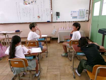 普段同じ教室で学習するということはなかなかないので、とても新鮮でキョロキョロしていた3年生でしたが、グループで意見を交流するときは少し恥ずかしそうにしながらも4年生の意見を真剣に聞いていました。「また一緒に学習したいな」という声がたくさん聞かれました。