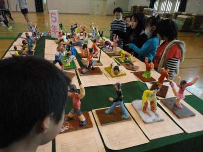 一年生の立体作品も展示しています。ゆらゆら、コロコロと揺れるしくみのおもちゃを