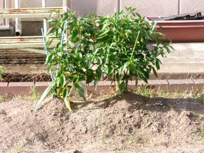 夏の終わりでも、ピーマンは元気に実をつけています。
