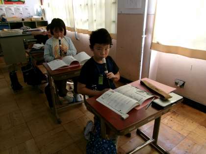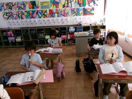 夏休みの宿題でがんばってきたリコーダーを今日の音楽で聴きました。「河はよんでいる」は今までより少し長い曲ですが、しっかり指使いを覚えられている人が多かったです。お家で何度も聴いていただき、ありがとうございます。今日はみんなで演奏したり、少しずつリレー奏したりと何度も演奏しました。