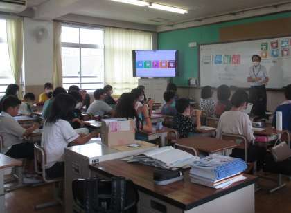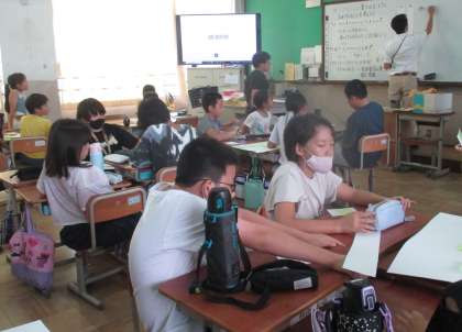 インストラクターの方に来ていただいて、4年生は「SNSのトラブル」、5年生は「インターネッとへの投稿の危険性」、6年生は「SNSによるコミュニケーショントラブル」をテーマに学習しました。スマートフォンのトラブルを回避するためにはどうすればよいかを考えました。
