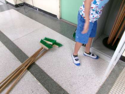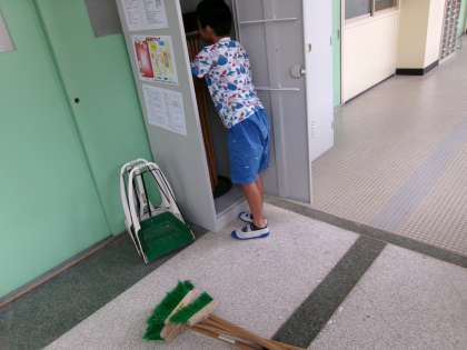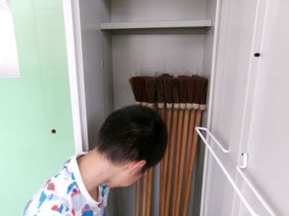 掃除ロッカーのほうきをすべて出して、一本一本丁寧に片付けてくれていました。