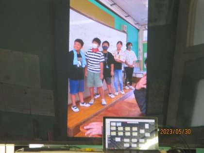 6年生の英語の授業です。今日は栗陵中学校から斎藤先生が来てくださって楽しい英語を学びました。ALTのエイ・ジェイ先生も一緒です。タブレットを使ってロイロノートで学習しています。また、日本の観光地をエイ・ジェイ先生に紹介するグループ発表の動画を鑑賞しました。