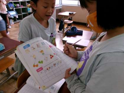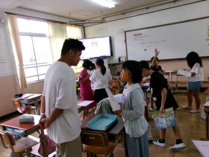 外国語活動では、好きなものを尋ねたり答えたりしています。好きな食べ物を聞かれたら笑顔でスラスラと答えることができました。尋ね方もスムーズになってきています。